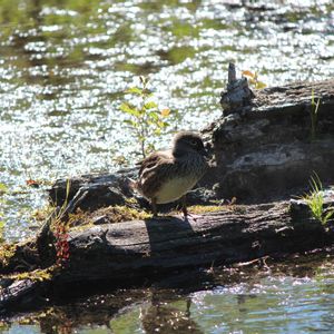 今日も暑いのでちょっと涼しいPic 上高地の岳沢湿地 ここでは季節によって沢山の植物と出会えます 今回はオシドリのひなに会いました せっせと水中の藻を食べている所に遭遇しました ちょっと倒木で休憩中