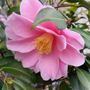 今年 一鉢残っていた 地植えにした 椿🌺 ちゃんと 花を咲かせました🌺💕 笑顔 って言う種類でしょうか?