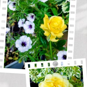 アンティークミニペチュニアとミニ薔薇コルダナ3番花の共演