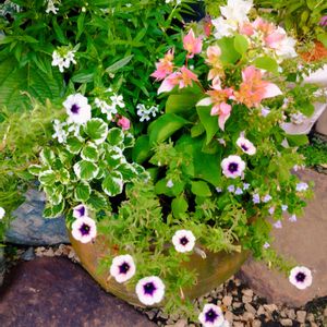 初夏の寄植え🪴 横浜ガーデンフェスタ2025にて頂いたペチュニア花衣、黒真珠と新たに迎えた栄養系コリウスの寄植え🌿 ❺アンティークミニペチュニアキャットミントの寄植え🪴