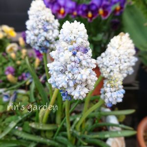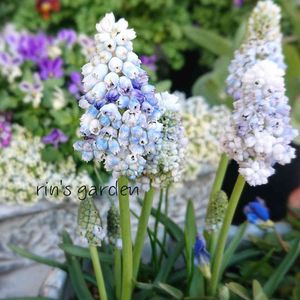 ムスカリ💙ダブルマジック 白~青のグラデーションが綺麗な 半八重咲きのムスカリさん♪ ブチャイクな姿から始まり🤭 日に日に美人さんへと 変身✨✴️してくれました🎵 *4/10~4/28🤳撮影*
