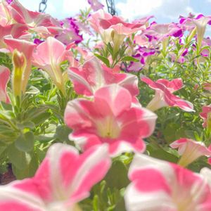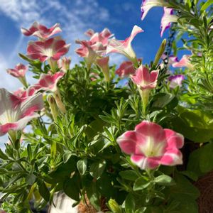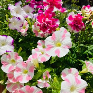 サフィニアももいろはーと、江戸しぼり 八重咲きペチュニア 可愛く咲いています❤️