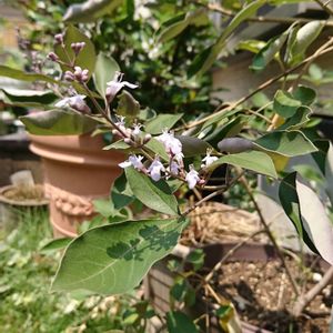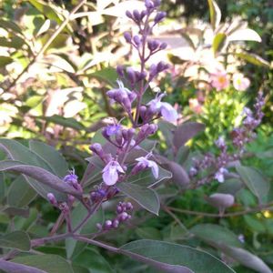 名前教えて下さい🙏 昨年 お花屋さんで西洋ニンジンボクと書いてあり購入🍀🍀? 葉っぱの裏が紫色で今年🌸花が咲きましたが? 違うお花かなぁ??? と、思いますが(^^;)