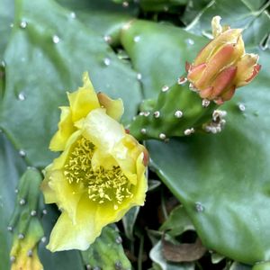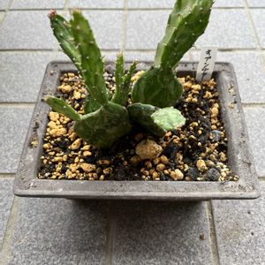 とあるスーパーにお安く買い求められたので購入しました。 札にはオプンチア・アーティキュラータと書かれていました。 テフロカクタスだの武蔵野だのオプンティアだのどれか正解が分かりません。 まぁー、どういう形に育つのか楽しみ🎵