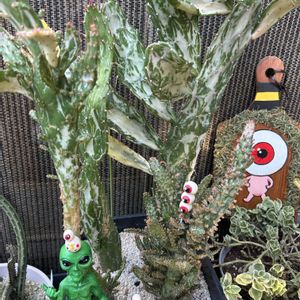 夏が終わって気づいたらサボテンたちが…! 1️⃣雪だるま? 2️⃣三段腹になりかけ💦 3️⃣子持ちモリゾー 4️⃣パリピもいますね… 何がいけなかったのだろう😩