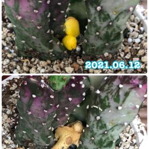 おはようございます☀️ 今朝見ると、昨年DAISOで購入したオプンチアに黄色い卵?蕾でしょうか?