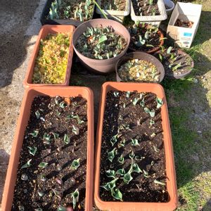 今日のお花チューリップ🌷 昨年の5月からお花に目覚めたのですが、今回初めてチューリップを育てています🥰 初めてなのに160〜170球位植えました😅 きちんと出てくるかずーっと心配していますが、どんどんあちこちに芽が出てきました🤩 上の三枚は見えにくいですが、芽が出ている本日の様子です! なんとかお花まで咲きますように🙏