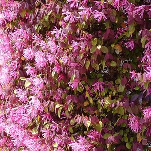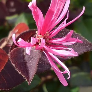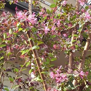 トキワマンサク ちゃん かな? 入口の、垣根に なっていました。 ピンク色の、かわいい お花を つけていました。