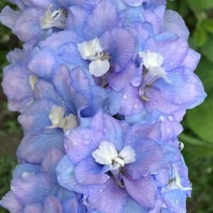 デルフィニウム 花言葉(青) あなたを幸せにします 涼しげに咲いています💜🩵🤍✨ 今、車の温度計は🌡️ 34℃と表示しています❗️🥵 あなたも暑さに負けないでね❣️🤗💕💕