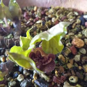 新潟県道の駅で購入した(アサヒ)ウスバサイシンです。今年で三年目、春咲くとも知らず購入、冬らしい冬がなかった今年?ホームタンクの下で冬越ししてました。三月上旬葉が全て落ち、焦げ茶色の茎の突っ張り出ていたので、玄関階段に移動して、様子を見てましたら、葉(?)の中に花💠地味な色ですが、初めて見ました。昨年は⁉️どうなったか?忘れました👴