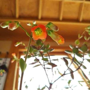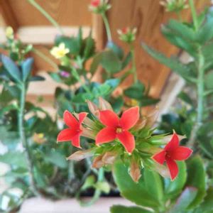 カランコエ(品種は?)、赤・黄・ピンクを一鉢にして三年目、鉢増加のため苦渋の選択、カランコエは花の咲かない時期に、咲くから👴感謝してます。また和室の冷たい所でじっと晩秋から耐え、水もあまり欲しがらず、その姿に感動し、正月からじっーと見てました。四月になったら駐車場のフェンスに移動します。