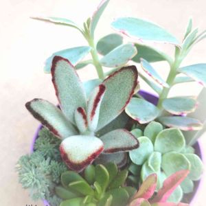 🏷️【ウサ耳祭り】参加させて下さい😃 黒兎耳さんをメインにした寄せ植えです。 紫色のプラ鉢が、ちょっと派手で気に入らなかったな…😅 夏が来る前に素焼き鉢に引っ越そう😆 追記 黒耳→黒兎耳 変更しました😄