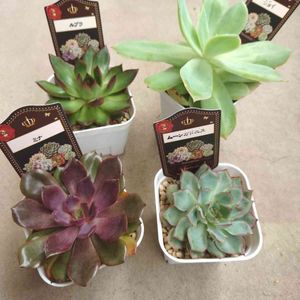 🏷️葉挿しの日に参加させて下さい❤️😃 ブロンズ姫と、白牡丹と、パープルディライトと…、あとは分かりません💦 チョコレートの空き缶に引っ越してもらい、成長を見守ります🔍👀 奥の恋心はアクセントです🤭 (あっ💦乙女心かも…🤣) モリモリに、なってくれるかな〜💕