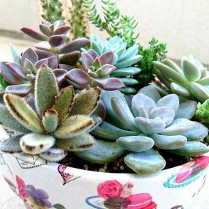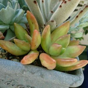 涼しくなったので、寄せ植えしました。 割りと大きい鉢に😊 ブロンズ姫、乙女心、野兎、火祭り、銘月、秋麗… あとは名前忘れました😅💦 ぎゅうぎゅうになって、紅葉も見せてほしい多肉一年生の私です🎵