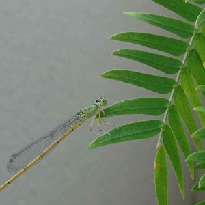 「エバーフレッシュ&イトトンボ」 ベランダに迷いこんだイトトンボが、エバさんに止まりひと休み😊 無事にベランダから脱出出来るでしょうか…💧