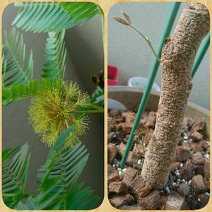 「エバーフレッシュ」 今朝、お花が咲きました😊 良く見ると、幹のあちこちから若い枝?も 出ていました。 スパルタママは、ますます自信を持ちました👍 これで、いいのだ~♪♪