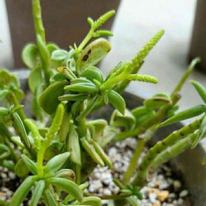 「ヒトデカズラ」? 数年前、小さいのを購入しリビングに置いていたところ コバエがわき、家族からも苦情が出始め…💧 腹が立った私は、無情にも 夏は灼熱地獄、冬は寒風吹きすさぶベランダへ出したのです(腹が立ったのはコバエであり、この子ではなかった。ごめん🙏) 寒さには弱いはずなのに、耐えて耐えて大きくなり、 毎年新しい美しい葉を出して 「母さん、見ろよ❗俺、どんな逆境にも負けないぜ❗」と、訴えて来ます🙇 我息子から、聞いてみたいこの言葉…😅