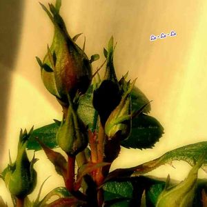 ミニバラがシンデレラ城のような蕾をつけました😍 大きな蕾だけ残し、あとは✂する方法もあるらしいのですが せっかくですから全部咲かせてみます❗ 「我が家のミニバラについては、みどりのまとめをご覧下さい」