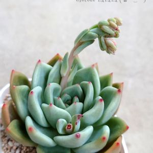 🏷️金曜日の蕾たちに参加します。 曇天で生暖かい風が吹いていましたが、 夕方から肌寒く感じてきました。 風邪引きさんが多いように思います💦 暖かくなり、ベランダの多肉ちゃん達は蕾を付けています☘️ 今日は、パープルシャンペンで💕
