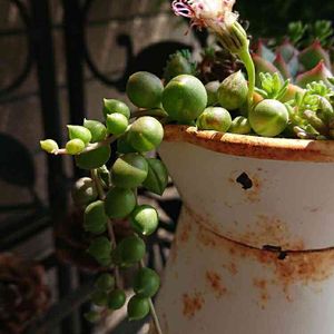ずっと捨てられなかったロウレイズティーの空き容器に、ピンクベリーを植えてみました☘️ どの方向から見ても素敵✨