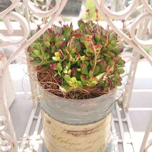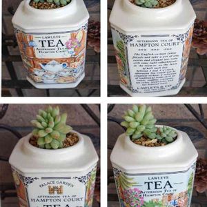 可愛い紅茶の空き缶に寄せ植えしました☘️ 南十字星の赤ちゃんがいっぱい…💕