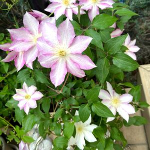 クレマチスボルゾーも咲き、出揃いました〜。淡墨は500円の苗だったのででこんなに咲いてくれて満足満足!