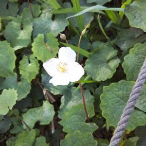 シラユキゲシ 別名 スノーポピー 灰緑色のハート型の花の間から長く伸びた花茎に4弁の白い花 清楚で可愛い🌼💕 ケシ科 エオメコン属 花言葉 清純な誘惑 優美 中国東部原産 耐寒性多年草 地下茎で繁殖力が強くグランドカバーに適しているが、増え続ける為管理が大変の場合には、鉢植えなどが適している。 薬用として利用されることもあるが、毒性も持ち合わせている。