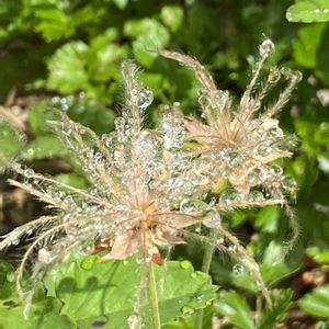 チングルマ(稚児車) 富山県の立山連峰登山で、夫が撮ってきてくれました⛰️ 一枚目・二枚目は、しべが開いた開花したチングルマ。 三枚目は、羽毛状の毛が輪状に並んだ実の姿のチングルマ。 はじめは、全体がよじれていますが、やがてほどけて、風に乗って種子が運ばれます🍃 和名は、実に生えた姿が、子供が遊ぶ風車(稚児車)に似ていることからついているそう。 雪解けの後の夏山に、群落をつくったチングルマは高山植物の代表ですね。 因みに、チングルマは、落葉小低木。 「木」です🌲。
