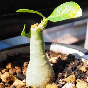 斑入り、、かも知れないアデニウムちゃん 一目惚れしてポチったかわいこちゃん◡̈ 白い模様の葉っぱは枯れ落ちたけどもうでてこないのかなぁ(^◇^;) こんないい天気なのにパトロールに行けない、、