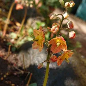 今日、大宮の大盆栽祭りに行って来ました。 ①バンダラメラータ(紅頭翡翠蘭) 紫色のバンダを知ってましたが、このバンダは花色や形が変わった珍しい品種のラメラータです。 持ち帰る途中で、花の上部が折れてしまってた🥲 一緒に入っていたのは、エアプランツのウスネオイデス。 木枠の入れ物に入ってたのも素敵です✨️(*ˊ˘ˋ*)✨️ ②エピメディウムワールエンセ (Epimedium × warleyenseエピメディウムワルレイエンセ) イカリソウのオレンジ色のは珍しいと思い、購入。 ③トキワヒメハギ トキワヒメハギも花が可愛いね😍 ④紅紫檀 紅紫檀の盆栽は、樹形が気に入り購入。素敵✨️(*ˊ˘ˋ*)✨️ 初めての花なので、長いですが、記録用として、メモ✍️を記載しました。 ✍️ バンダラメラータ この変種はフィリピンのルソン島原産の着生ランです。母種のバンダ・ラメラタはコウトウヒスイラン(紅頭は台湾本島の南東に位置し現在では蘭嶼<ランス>が使われ、このランの発見地に因みます)と呼ばれ、少し色などが違いますが、沖縄県石垣市登野城2391番地の尖閣列島の魚釣島に自生しています。という事で日本にもバンダが自生しています。 ●フィリピンやボルネオ島に分布しています。茎の高さは10~30センチほどになり、帯状の葉が2列につきます。花弁や萼片は淡黄色でやや緑色を帯び、栗色の斑紋や縞があります。花冠のかたちは、ドラゴンの飛ぶ姿に似ています。和名では、「コウトウヒスイラン(紅頭翡翠蘭)」と呼ばれます。この「コウトウ」とは、台湾の東側にある小さな島、蘭嶼(らんしょ)の古い呼び名である紅頭嶼(こうとうしょ)に因みます。 ラン科ヒスイラン属の常緑多年草で、学名は Vanda lamellata。英名はありません。 エピメディムワールエンセ 「ワールエンセ」はE.alpinum(アルピヌム) と、E.pinnatum subsp.colchicum (エピメディウム・ピンナトゥム・コルキクム )の交雑種です。花色は赤銅色とされていますが個体差はあるようです。小花ですがたくさん咲きます。また、内萼片が花弁より長いという珍しいタイプです。 エピメディウムは、「イカリソウ」の学名になります。個性的な花の形と、葉の独自の美しさから観賞用として、長く親しまれてきました。交雑しやすい特性を生かし、近年では交配育種も盛んです。 学名:Epimedium ×warleyense メギ科 イカリソウ属 別名:ワルレイエンセ、イカリソウ(錨草)、淫羊霍(いんようかく)、三枝九葉草(さんしくようそう) 交配親:E.alpinum ×E.pinnatum subsp.colchicum 開花時期:4月ごろ 花色・大きさ・花形:赤色 最終樹高:地植え:0.2m 〜 0.3m 鉢植え:0.2m 〜 0.3m (耐寒性落葉多年草) 最終葉張り:0.3m 〜 0.5m  栽培用途:鉢植え、地植え、シェードガーデン、グランドカバー、花壇、カラーリーフなど 植栽適地:日本全国 育てやすさ: ★★★★☆ 初心者におすすめ 日照条件:半日陰〜日陰 トキワヒメハギ 「常盤姫萩(ときわひめはぎ)」は、ヨーロッパ中部~イタリア原産の常緑小低木で、春先に萩の花に似た形の花を咲かせます。赤紫色と黄色のポップな色合いがとっても目立ち、香りも良いので、花の頃には周辺に甘い香りが広がります。こんもり育ちますので花壇の縁取りや、グランドカバーにもおすすめです。学名「ポリガラ・カマエブクスス」 別名:ポリガラ・カマエブクスス 学名:Polygala chamaebuxus 科・属名:ヒメハギ科・ポリガラ属 原産地:欧州アルプス、カルパチア山脈 分類:常緑低木 寒さ:強い 暑さ:弱い 樹高:10cm~30cm 花径:約 1.5cm 花色:ピンクに黄色、白に黄色 場所:日向(夏は半日蔭) 水やり:過湿を嫌う 肥料:控えめ 増やし方:挿し木 用土:山野草の土など 用途:鉢植え、ロックガーデン 紅紫檀 ベニシタン(学名:Cotoneaster horizontalis)は、中国西部山岳地帯原産で、バラ科コトネアスター属の半常緑低木です。コトネアスターとも呼ばれます。暖地では常緑となり、寒地では落葉樹となります。トキワサンザシと花や実が似ていますが、ベニシタンの葉は小さく樹高が低いです。学名がC. horizantalisであるように、枝は水平に広がります。分枝が多く、横に広がるので盆栽によく使われます。 葉は全縁で、枝に棘はありません。木から甘い樹液が出て蜂などの吸密動物を引き寄せます。初夏に白い小さな五弁花を咲かせ、秋~冬に赤い小さな実を鈴なりにつけます。
