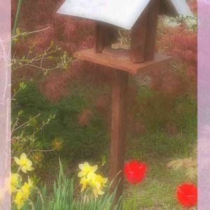 我が家に鳥の餌台がやって来ました🐦️ 義理母の小さなお庭にあったものを譲り受けました😊 だいぶん傷んでいたので修復し色を塗り直しました(旦那が)😃