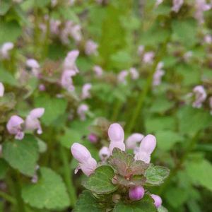 我が家の裏にいつの間にか群生していたヒメオドリコソウ ぷっくり桜色が可愛い😍 花の蜜はとっても甘いのに葉っぱの 匂いは臭いのが残念😔