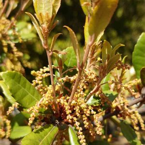 姥目樫の花です 雌雄同株、新葉と同時に開花するようです 垂れ下がるように咲くのが雄花、長さ2〜2、5センチくらい。雄しべは4、5個らしいですが、この写真では確認出来ません。 今日のところは雌花は確認出来ませんでした。 又、観察します