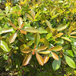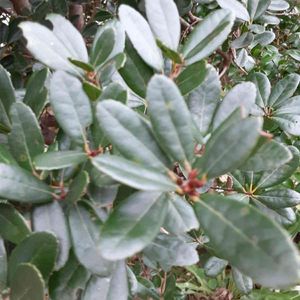 これは、何の木でしょうか? 葉っぱの大きさは、長さ5-6センチくらいです。 常緑樹、木の大きさは170センチくらいです。