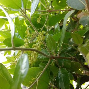 ウバメガシの若葉がピカピカ✨と 綺麗だなぁと見ていたら 初めて雄花を見ました!!