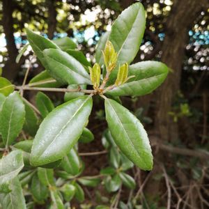ウバメガシ (ブナ科コナラ属) 新芽が出てつぼみも見えます、まだ雌花は見えません。