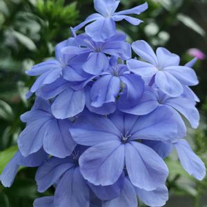 ルリマツリ(プルンバゴ)の花言葉∶「いつも明るい」「同情」「ひそかな情熱」 イソマツ科ルリマツリ(プルンバゴ)属🌿 別名∶アオマツリ 母から枝を貰って挿木したルリマツリが咲きました🏵️✨✨