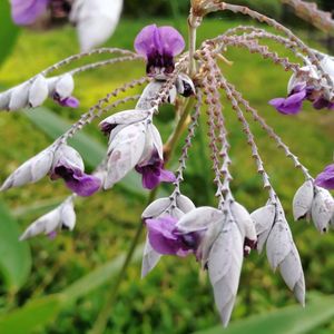 ヤマボウシを見た近くに①②ミズカンナと言うお花が見られました 大きな葉っぱに背丈が高く垂れ下がり変わった咲き方のお花に見えました ③④まだこれから咲き始めるのもありました ス〜っと伸び大きな葉っぱの印象的なお花でした💜 20258/22撮影