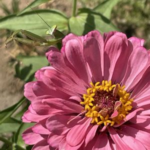 ジニア キク科ジニア属 どこかにオオカマキリがいます。百日草。