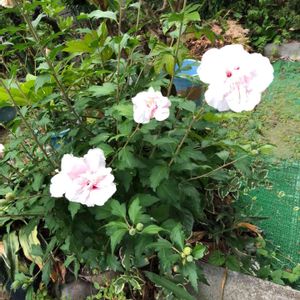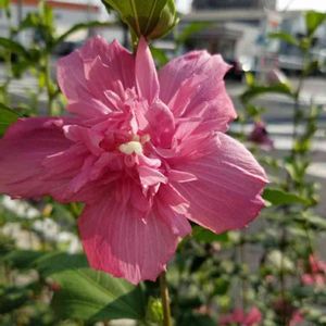 駅の周りを彩るように八重と一重のムクゲが咲いていました☺️ 一重のムクゲも綺麗ですが やはり八重は華やかですね💕