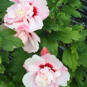 先月から ず〜っと咲いてくれてる 🌸🌸🌸ムクゲ 八重咲🌸🌸🌸 雨に打たれたり 虫がついちゃったり😢 でも 長い間楽しませてもらってます😍