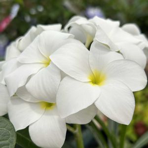 プルメリア-プディカ 昨日のHCにてプルメリアが満開し ています。熱帯アメリカを原産とす る常緑中小木です。プルメリアの原 種と言われています。密集して伸び た枝にまとまって咲く花は真っ白で 美しく中心はほんのりとした黄色、 その見た目から連想したのかプルメ リア-プディカにはブライダルブーケ と言う素敵な別名がついています。 (((o(*゚▽゚*)o)))♡❣️