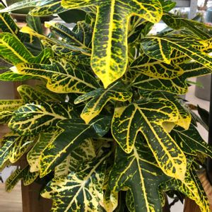 🟢8日は葉っぱの発表会🌿🟢 クロトン。斑入りで綺麗です。 (*˙︶˙*)ノ"💕💕♬ ⋆꙳𓄸 ♪ ( ง*ˊᗜˋ*)ว ♪ 𓄸꙳⋆ ︎ ♬✨️✨️