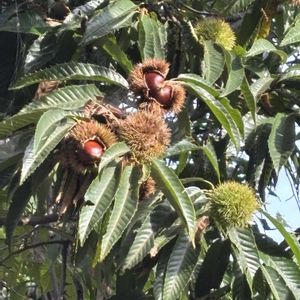 栗畑。 🌰 受け止めたい、他所の栗🤲 今にも落ちてきそうだし、すでに沢山落ちているし。 4枚め)サイクリングで出会った、巨大な栗の木。収穫姿と方法をいろいろ想像💭 じっとしていた猫ちゃんも?💭