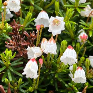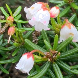 ツガザクラ ツツジ科 葉が針葉樹のツガに似るから。 出会うと、高い山だな、と思います。 可愛いのに、ピンぼけでごめんなさいね😅 6/28 日光白根山