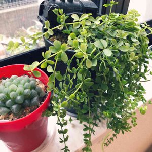 ❁⃘今日のお花❁⃘ 『ペペロミア』お天気が良いので ベランダで日光浴です♪ 葉が落ちるので何故かと思っていたら、こちらで、お水不足だと教えて頂きまして、それ以来は調子が良いですෆ⸒⸒⸜( ˶'ᵕ'˶)⸝