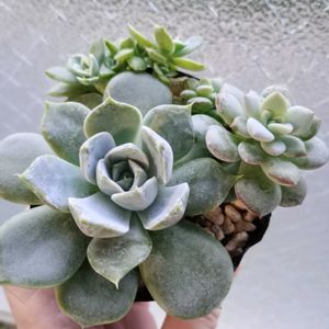 今日のお花 エケベリア🌿.∘ 白いエケベリアをupしてみました。 1️⃣カンテ エケベリアの女王。 何となく無機質な雰囲気もありますが、石膏のように白い姿は凛として貫禄があります。 2️⃣べバリー 肉厚な葉っぱに綺麗な爪。 3️⃣タイニーバーガー ほんのりピンクがかって、優しい雰囲気があります。 どの子も美しい姿のまま、無事に夏を越して欲しいです🥺 🏷️今日のお花 🏷️白い貴婦人✨ 🏷️白い水曜日♡ 参加させていただきます