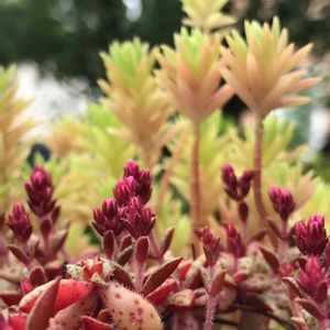 クラッスラー クーペリー🌺 後ろはセダム メキシコ万年草🌼 メキシコ万年草の黄色いお花が終わったら 冬の紅葉が残ってまだ葉が赤い中🌸 クーペリーに 小さな小さなつぼみが付きました💐 気温差があったり 湿度が高かったりで 体調を崩さないように そして マスク😷熱中症🥵には 本当にご注意下さいね💦