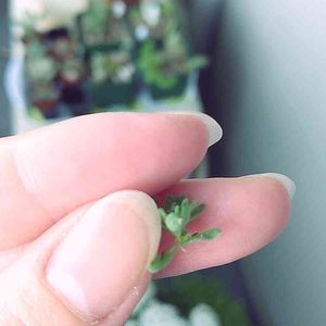 落ちちゃった万年草の葉を鉢に飾ってたら根が出てました! 小指の爪サイズもないのに強すぎる💦 カット苗もこれくらい力強く根を出してほしいな