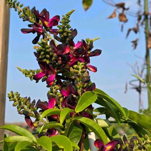 滞在した八ヶ岳山麓のホテルのお庭で、夏に紅紫色の花を咲かせる青みを帯びた「醋甲藤(サッコウフジ)」と出逢えました。 しかしながら急の寒さ到来で、”返り咲き” するタイミングを完全に見失ってしまったかのように、数日経っても蕾を膨らませたままでいました💓 醋甲藤は、台湾、中国南部原産🇹🇼🇨🇳✨ 藤の花と異なり、房状の花穂が垂れずに蝶形の花を上向きに咲く花姿が特徴的なマメ科の蔓性常緑低木です🌿🦋 別名は、「紫夏藤」_。 花言葉は、「心酔する恋」、「佳客」…他。